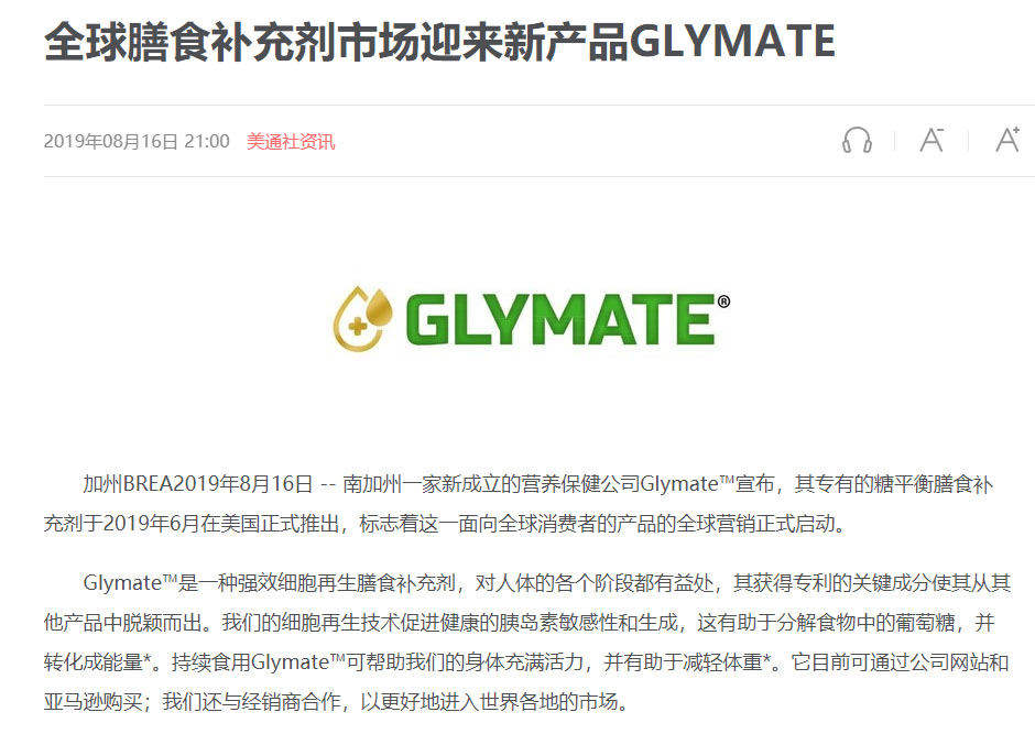 全球膳食補(bǔ)充劑市場(chǎng)迎來(lái)新產(chǎn)品GLYMATE(衡糖膠囊)