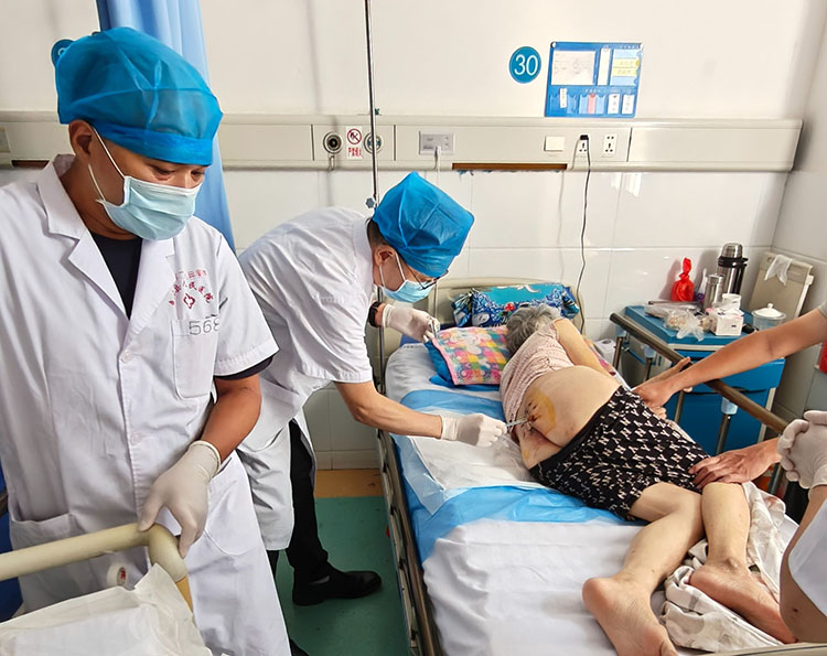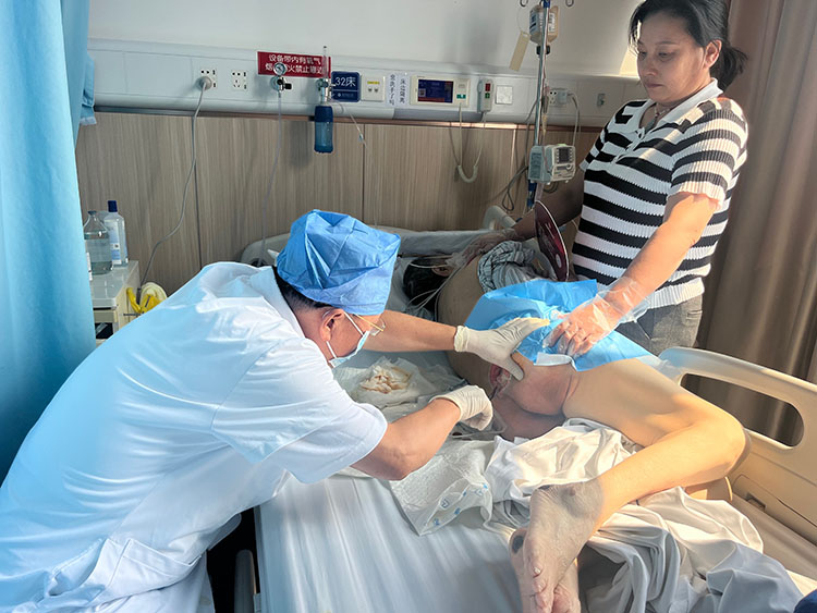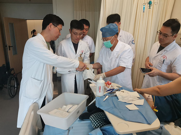 9月5日,中國中西醫(yī)結(jié)合學(xué)會燒傷專業(yè)委員會常務(wù)委員、《中國燒傷創(chuàng)瘍雜志》副總編輯王洪生主任到廣東揭陽惠來縣人民醫(yī)院分別會診了糖足,壓瘡,燒傷病人合計(jì)8位患者,并親自示范規(guī)范換藥并詳細(xì)講解下一步治療方案和注意事項(xiàng)。