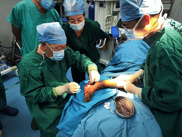 9月11日,應(yīng)廊坊市安次區(qū)醫(yī)院外科邀請,《中國燒傷創(chuàng)瘍雜志》常務(wù)編委、燒傷創(chuàng)瘍再生醫(yī)療技術(shù)臨床專家趙瑞慶,為一例四級糖尿病足合并下肢血管閉塞患者行皮簇種植術(shù),術(shù)中順利出血不多,病人安返病區(qū),得到了患者和主治醫(yī)生的感謝和贊揚(yáng)。