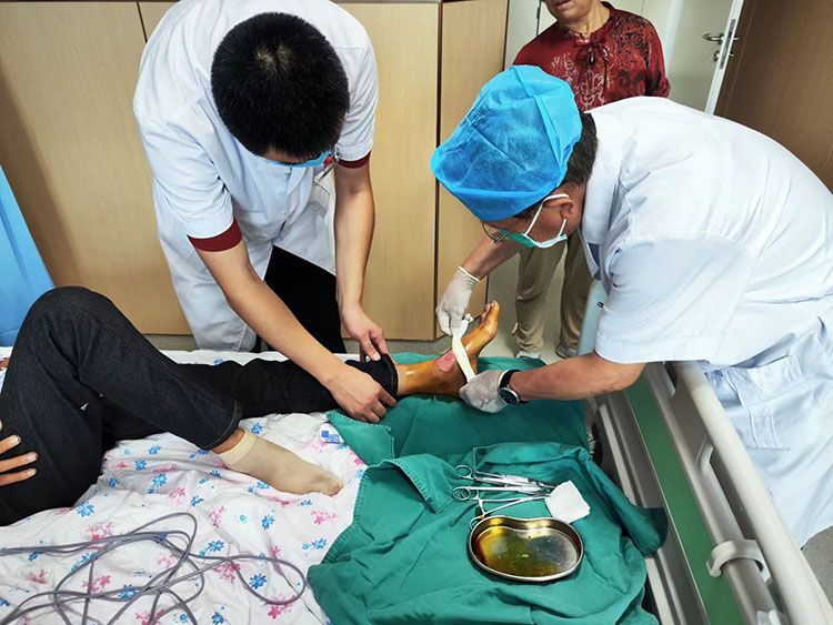 8月28日,《中國燒傷創(chuàng)瘍雜志》常務(wù)編委、燒傷創(chuàng)瘍?cè)偕t(yī)療技術(shù)臨床專家趙瑞慶,在該醫(yī)院會(huì)診了9例慢瘡患者(糖足潰瘍2例,壓瘡4例,會(huì)陰部深筋膜感染1例,臀部深筋膜感染1例,下肢外固定皮膚感染1例),并針對(duì)每例患者制定出個(gè)性化的治療方法,受到當(dāng)?shù)蒯t(yī)務(wù)人員及家屬的熱情稱贊。